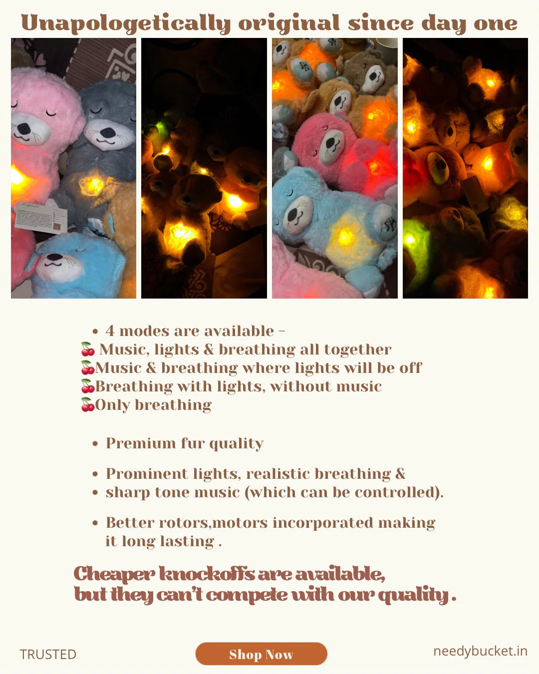 The teddy bear gently mimics a natural breathing pattern, creating a soothing effect that helps calm the mind and body. Its rhythmic rise and fall provide a comforting presence, making it an ideal companion for children at bedtime or anyone needing a sense of security.